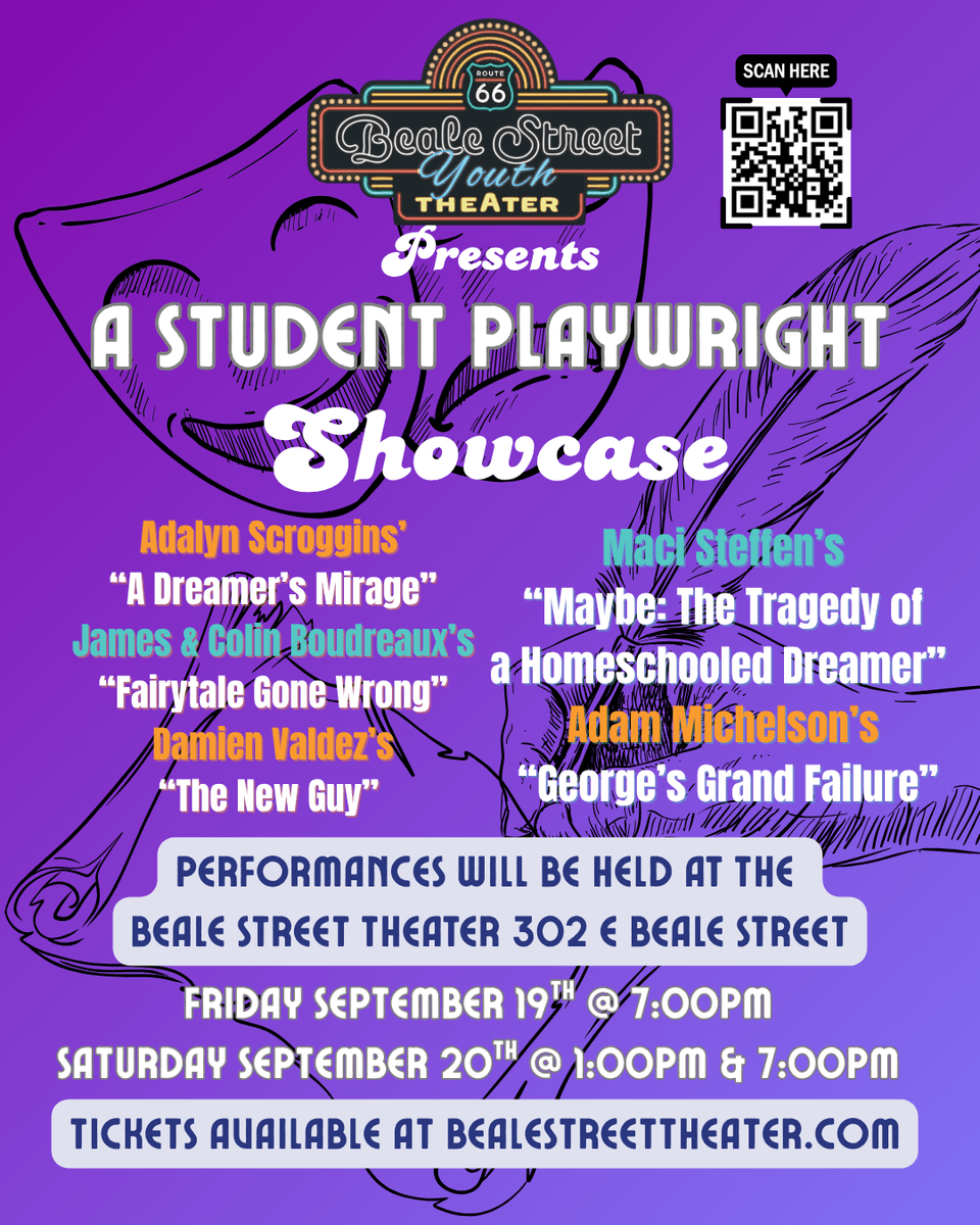 Then, mark your calendar, because Beale Street Theater will present a Student Playwright Showcase in September, on the 19th at 7:00pm, and the 20th at 1:00pm and 7:00pm.