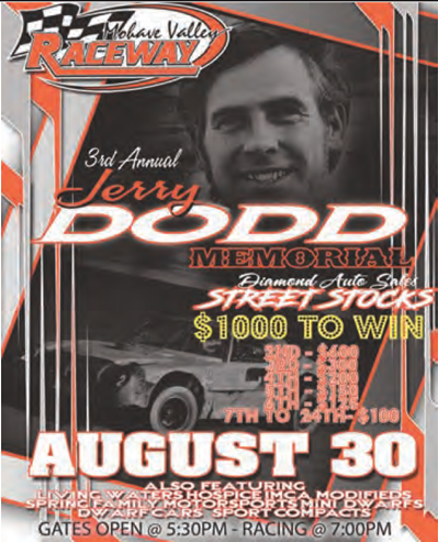 On Saturday, August 30th, the second half of the racing season resumes with the Jerry Dodd Memorial, and the Mohave Free Press is giving away free tickets!